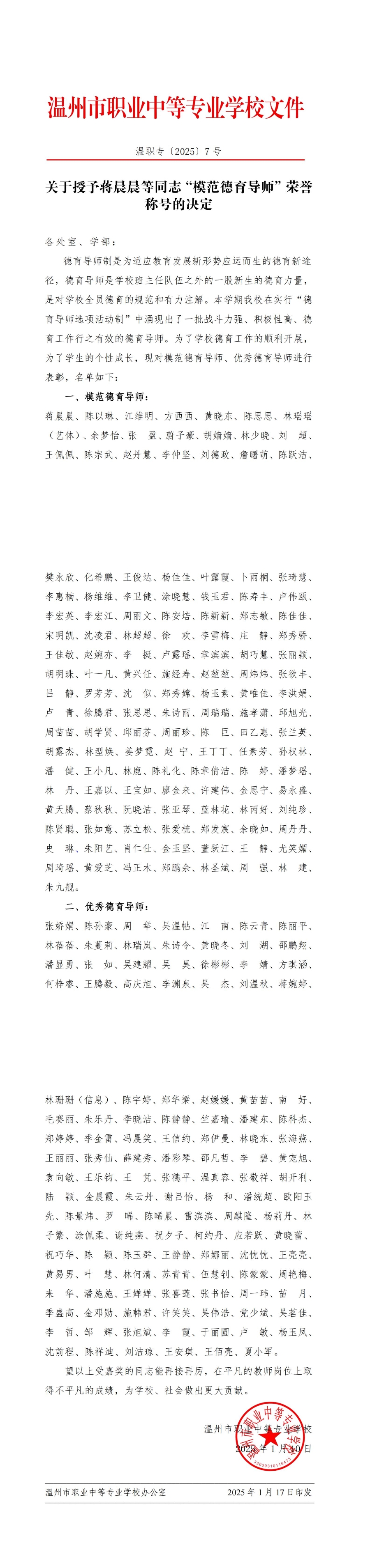 202507 关于授予蒋晨晨等同志“模范德育导师”、“优秀德育导师”荣誉称号的决定.pdf