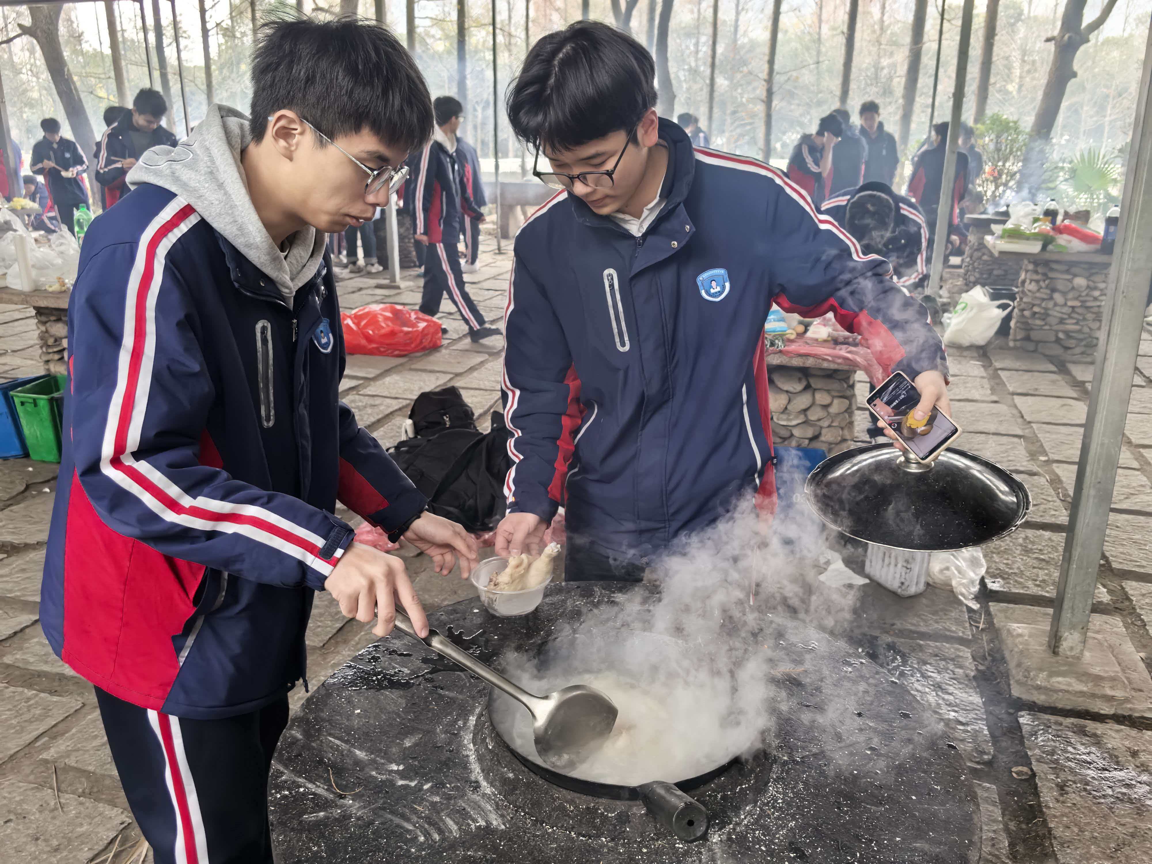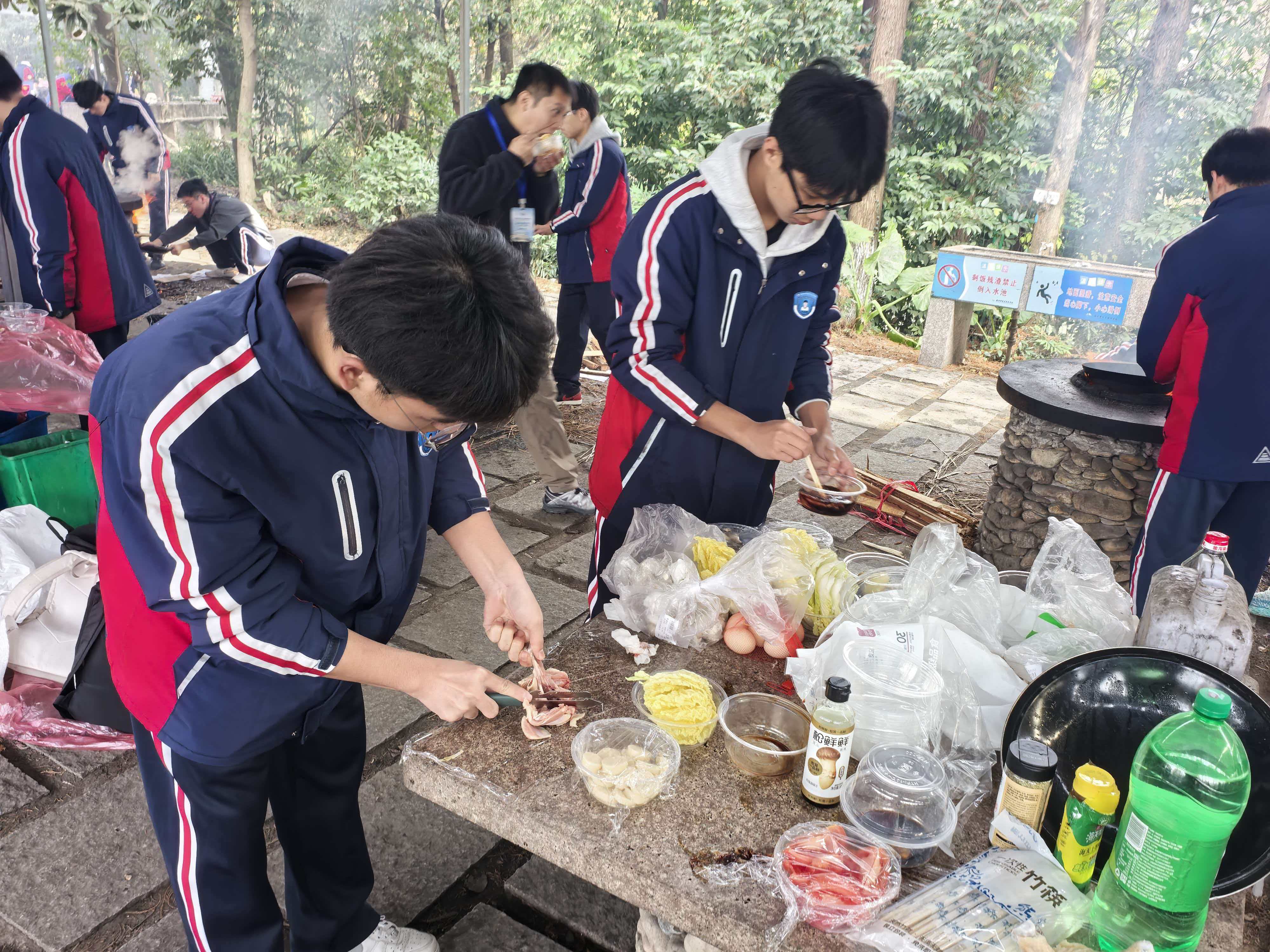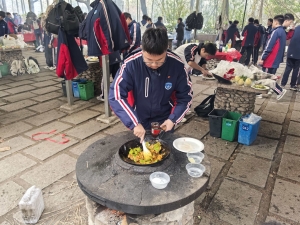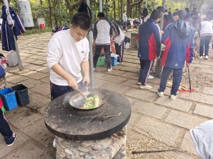从食材清洗到锅铲翻炒,从串起烤串到灶火添柴,同学们以小组为单位分工协作。