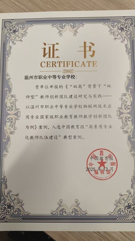 近日,我校再传职教佳音,信息学部申报的《“双高”背景下“双师型”教师创新团队建设研究与实践——以优米体育入口官网下载物联网技术应用专业国家级职业教育教师教学创新团队为例》案例,成功入选中国教育报“高素质专业化教师队伍建设”典型案例,这是学校在“双师型”教师队伍建设领域的重要成果,更是温州职业教育在师资培育模式创新上的全国性认可。